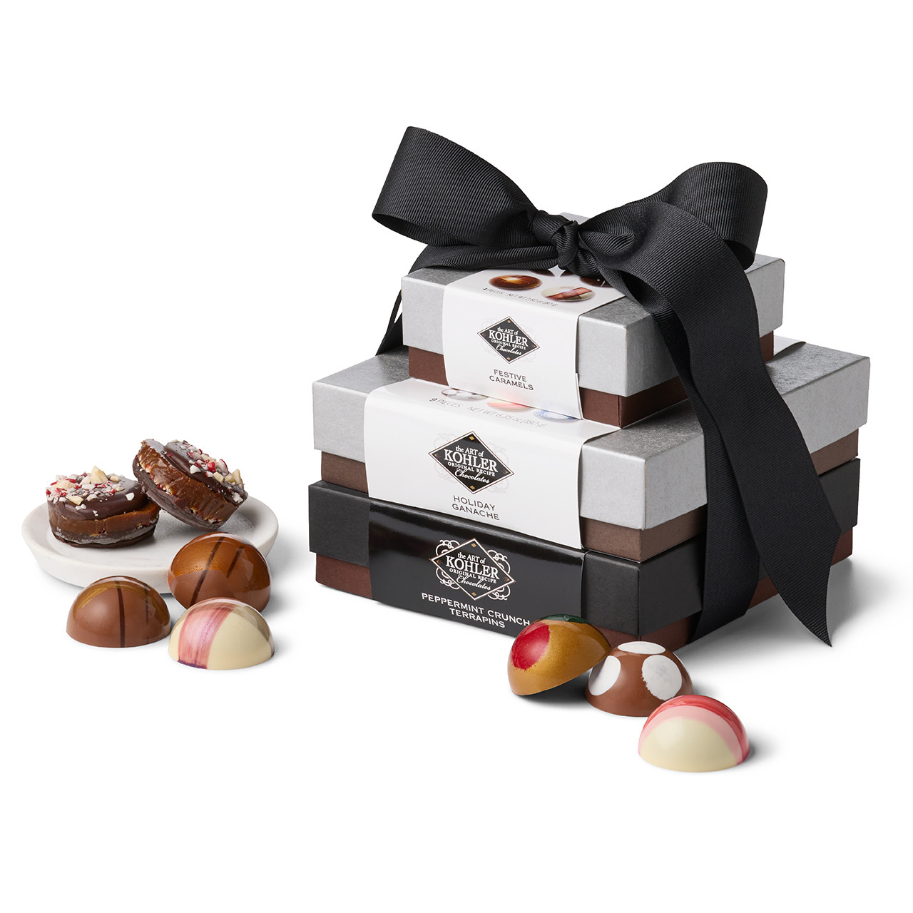 This artful tower is built to be the center of your celebration. Present the ultimate gift of tasty decadence.